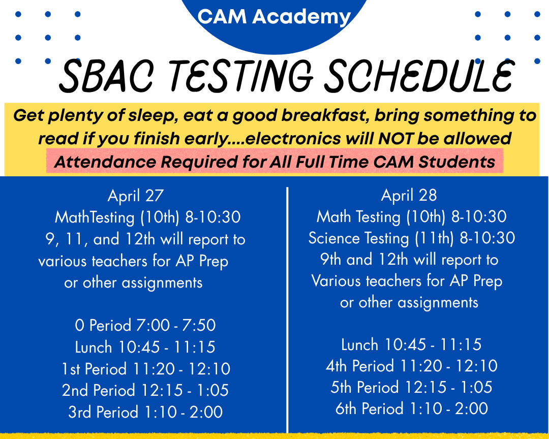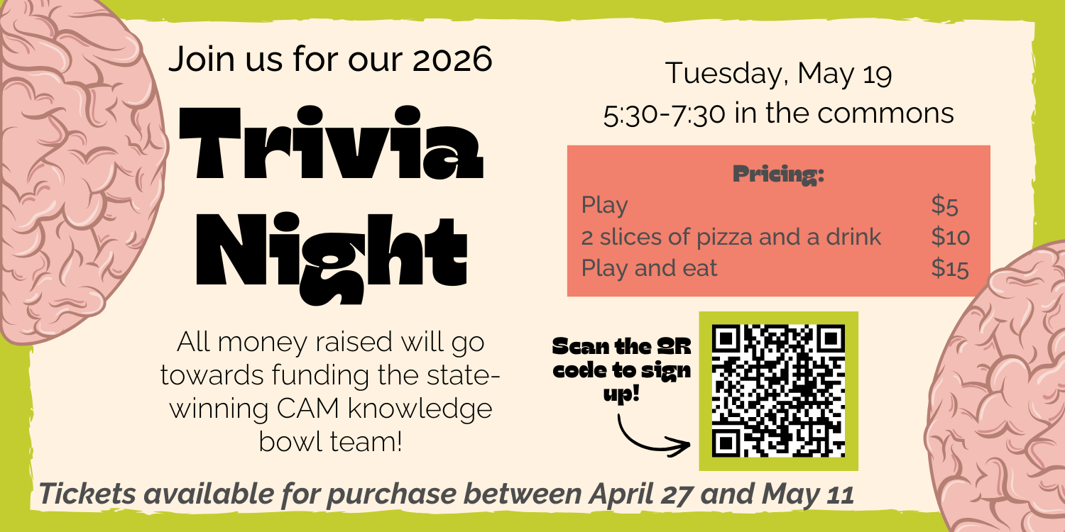 CAM Academy is hosting our Spring Blood Drive on May 27th from 10:00 am to 4:00 pm in our commons. If you are eligible to donate, please consider signing up and supporting our National Honor Society in their efforts to help our community and earn scholarships for our 2026 graduates.