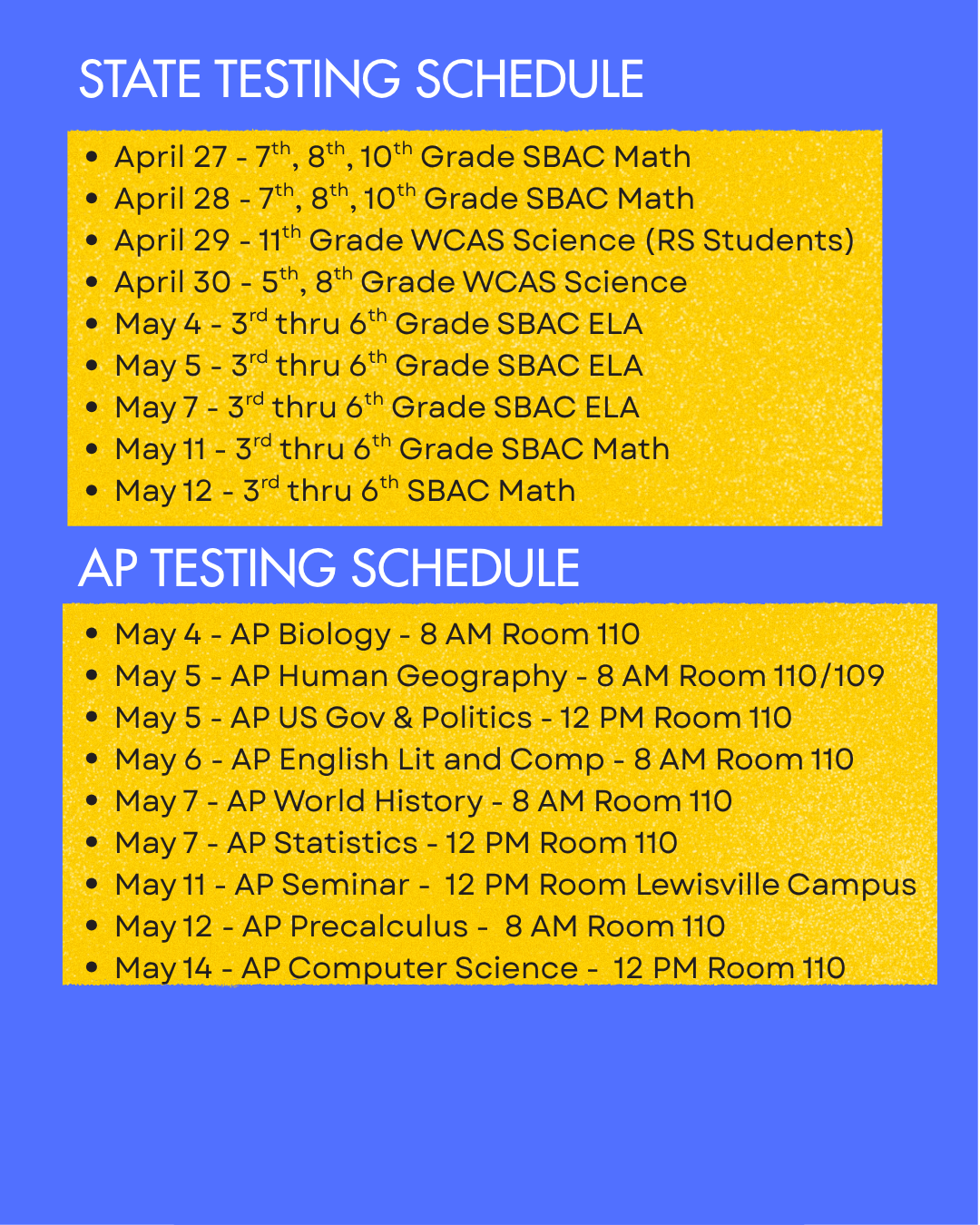 State Testing Schedule – April 27th (Monday)