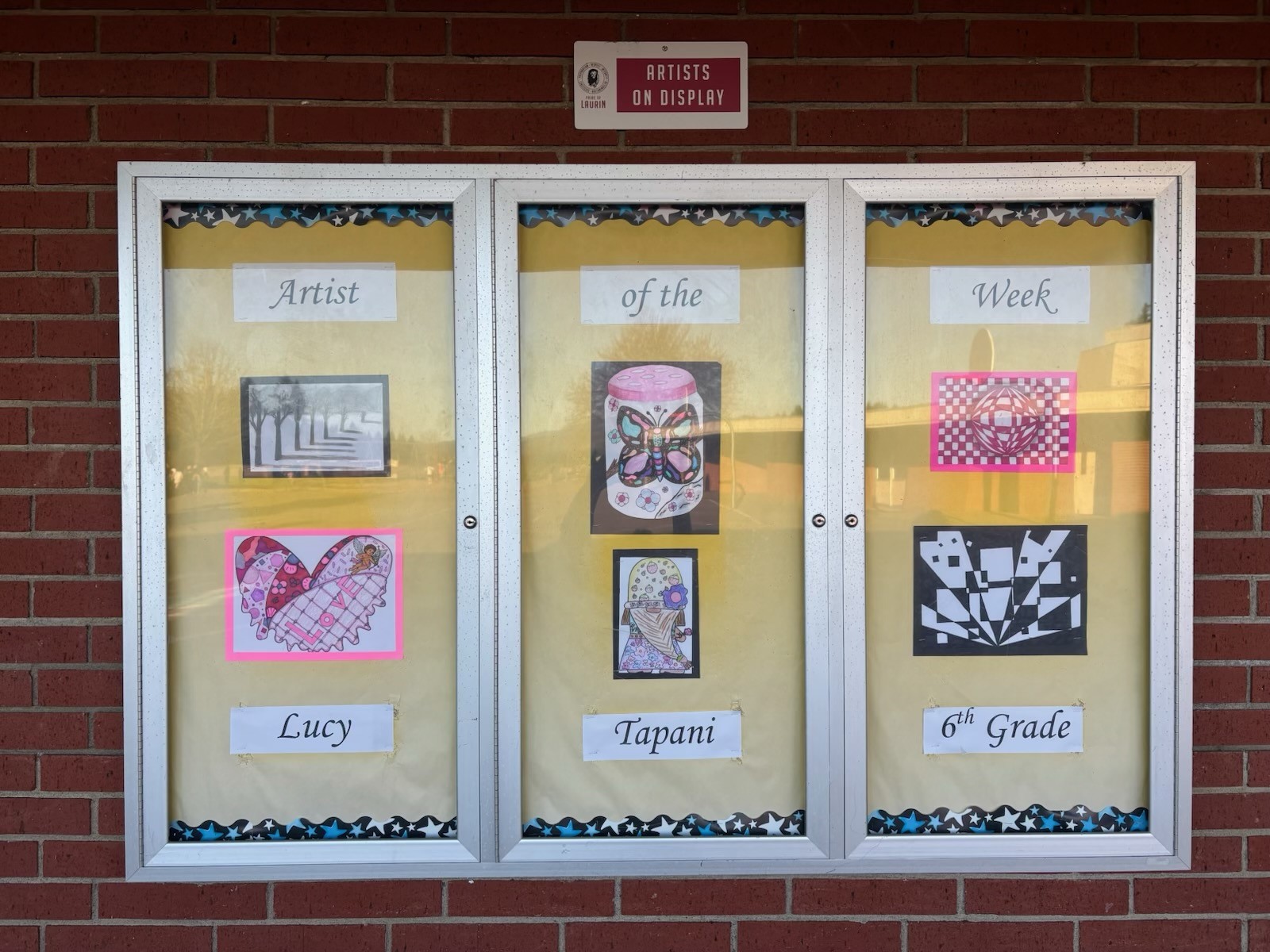 If you would like to be Laurin’s “Artist of the Week” and have your artwork on display in the plexi-glass case on the west end of the playground… fill out a slip with your first and last name, grade level, and Room number at breakfast or lunch in the cafeteria. (… or See Miss Bachman in Room #14) You do not have to be in Art Class to enter, or to win! |