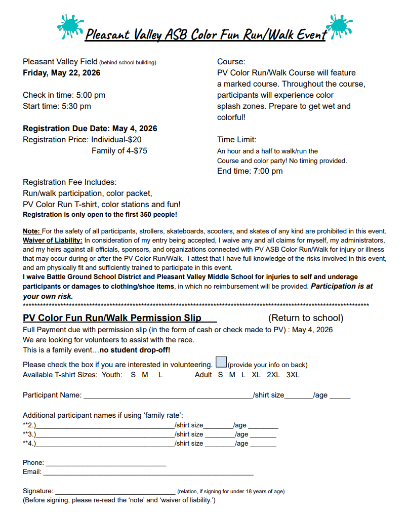Website: https://pvm.battlegroundps.org/ Location: 14320 NE 50th Avenue, Vancouver, WA 98686 Mail to: Pleasant Valley Middle, PO Box 200, Battle Ground, WA 98604