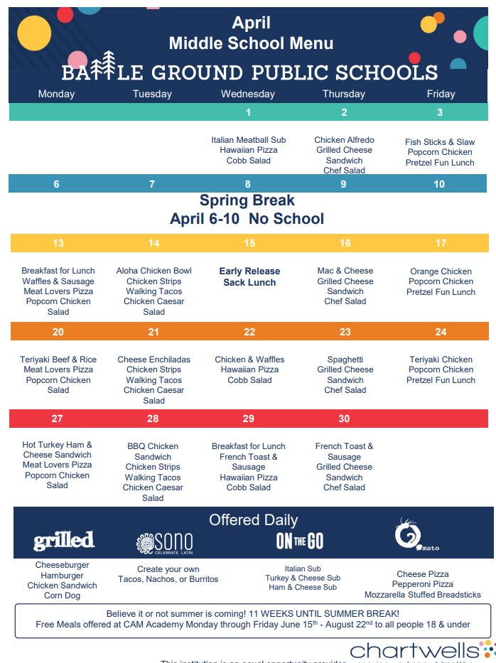 - Late start Wednesdays in April: 1st, 22nd, 29th