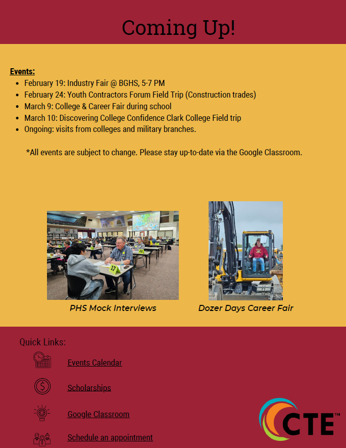 If you are an employer interested in attending this free event expected to draw hundreds of students, families and community members, fill out this form to reserve a table or contact BGHS Career Guidance Specialist Kevin Doyle at doyle.kevin@battlegroundps.org or 360-885-6598.