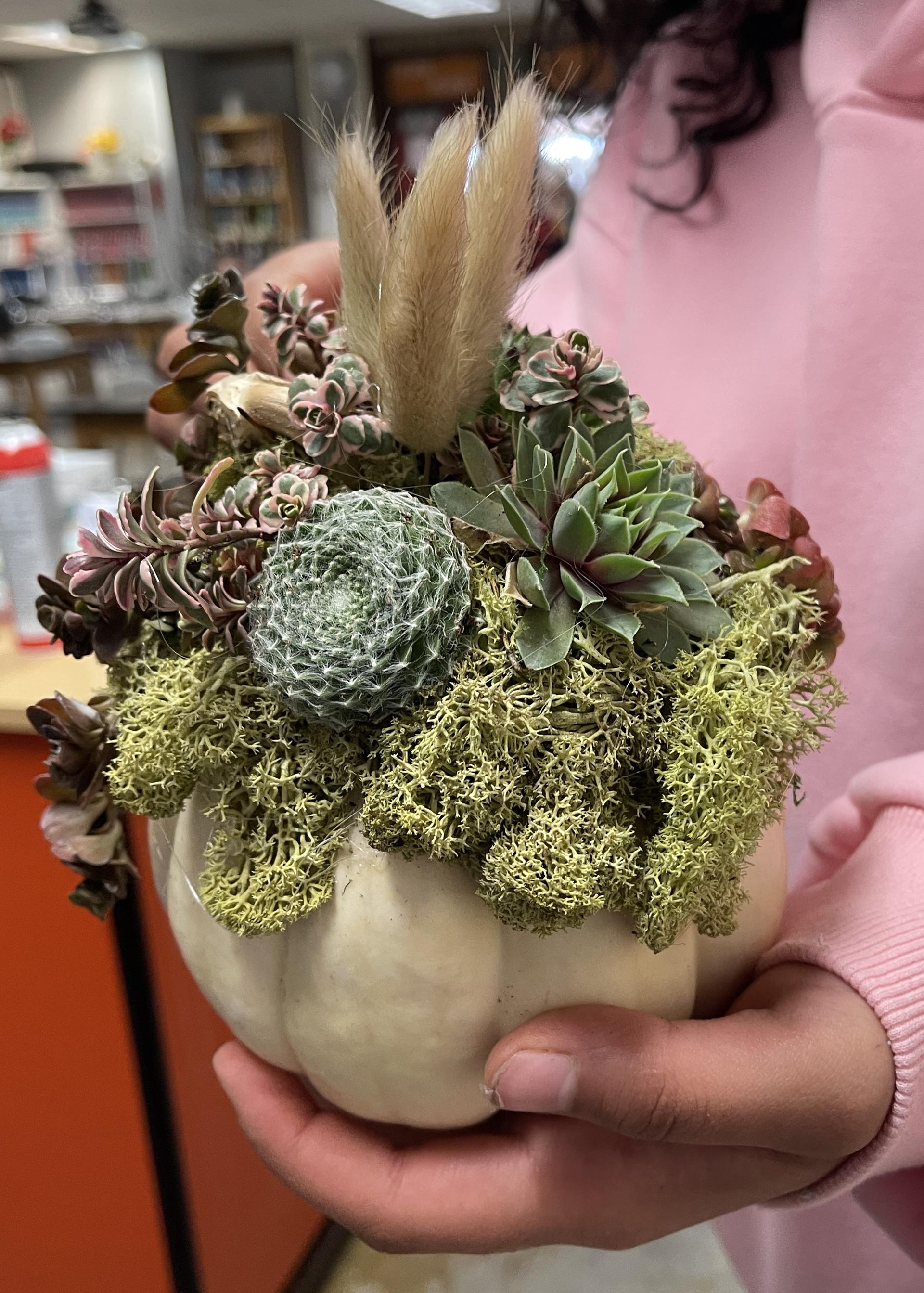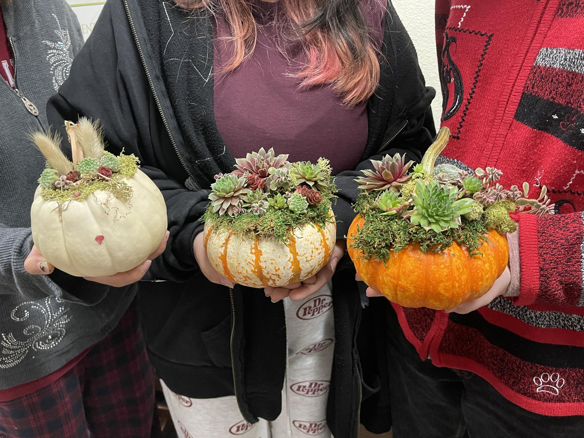 The pictures below are from the Ag Department's "Succulent Pumpkin" project. This is a project made possible by our annual plant sale. |