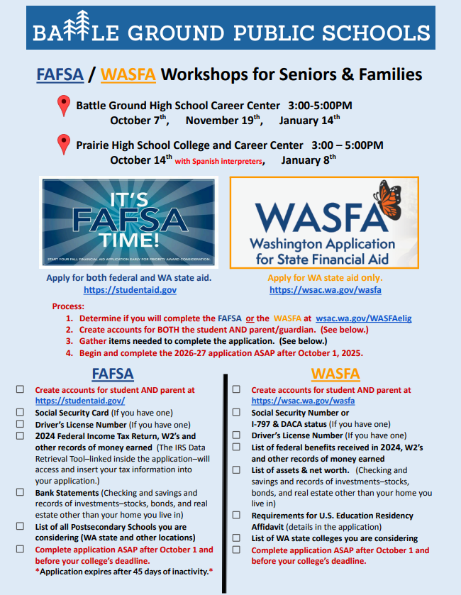 HS Transcript Request FASFA Information - Live and Ready to Use! Scholarship List for Battle Ground Public Schools