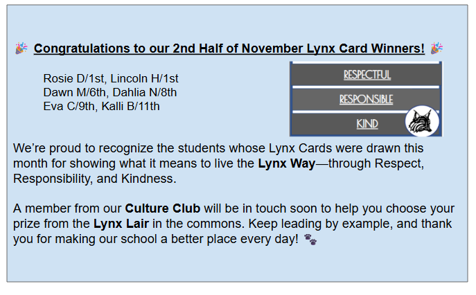 November Lynx Card Winners! |