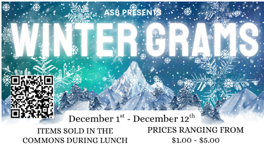 Winter Grams are on sale December 1st through December 12th Students and Families can purchase items during lunch in the commons. Parents and staff also have the option to purchase Wintergrams online through our Intouch site using the QR code or this link